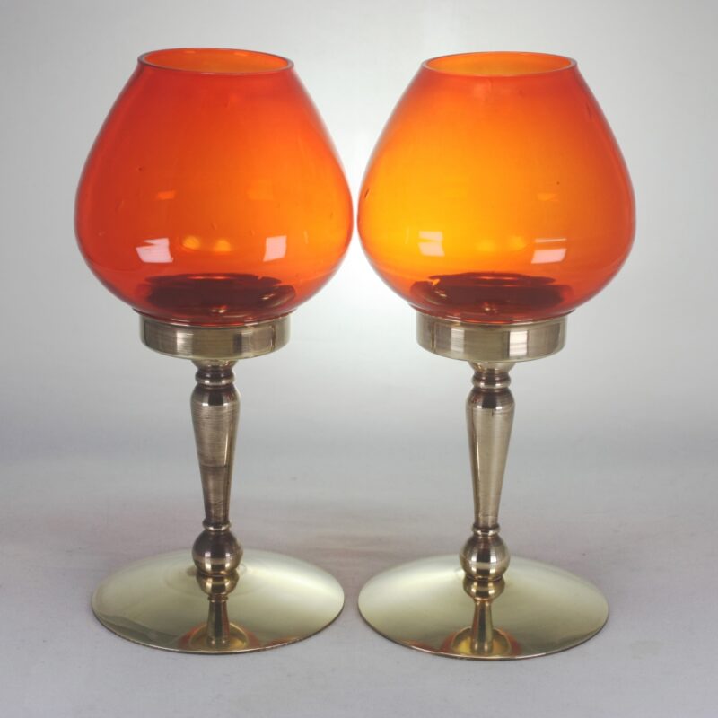 2 vintage brass and glass tealight holders, by P Pehrson.