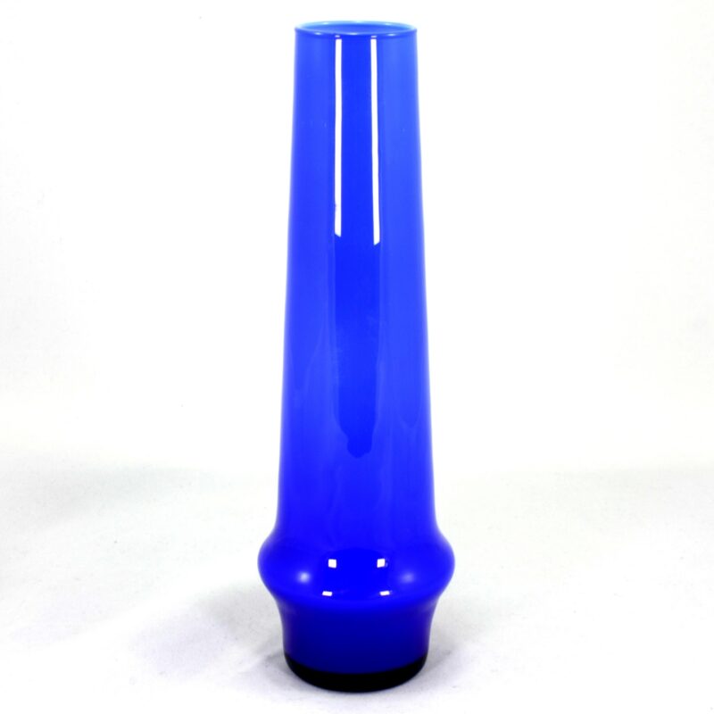 Blue glass lined with white.