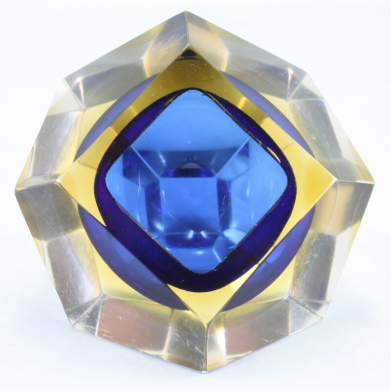 A Murano sommerso facet cut bowl in blue, amber and clear glass.