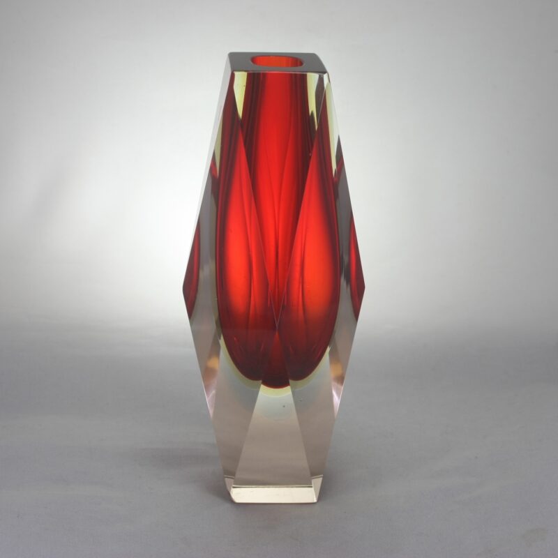 A Murano, sommerso, facet cut vase in red, yellow, pale blue and clear glass.
