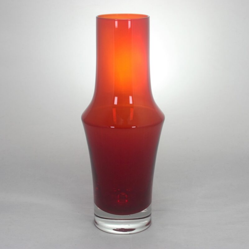 A vintage Riihimaki 1376 vase in red glass encased in clear.