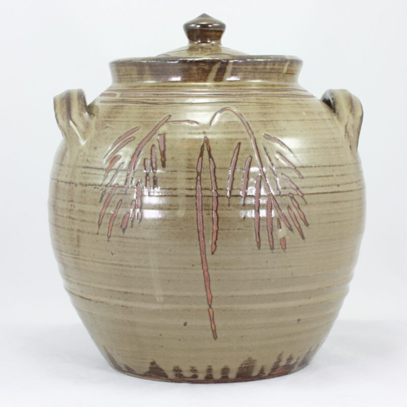 A large lidded pot by Seth Cardew at Wenford Bridge Pottery.