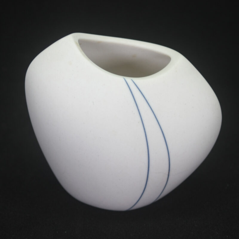 A Sue Dyer studio pottery porcelain vase with blue inlay, inspired by the Japanese Mishima pottery technique.