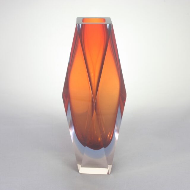 A Murano, sommerso, facet cut vase in red, blue and clear glass